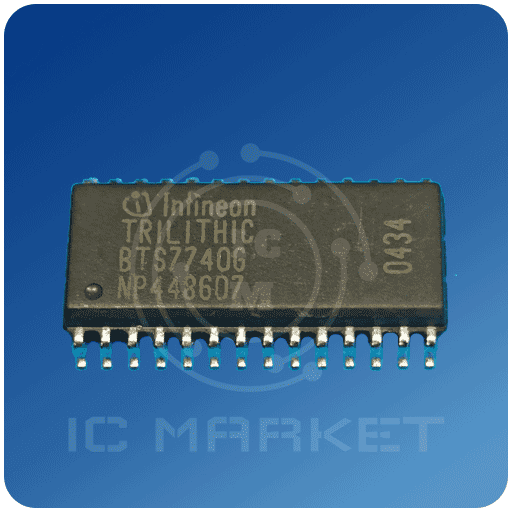 www.DataSheet4U.com TrilithIC Data Sheet 1 1.1 • • • • • • • • • • • • • • • Overview Features BTS 7740 G Quad D-MOS switch driver Free configurable as bridge or quad-switch Optimized for DC motor management applications Low RDS ON: 110 mτ high-side switch, 100 mτ lowside switch (typical values @ 25 C) Maximum peak current: typ. 8 A @ 25 C= Very low quiescent current: typ. 5 ←A @ 25 C= Small outline, enhanced power P-DSO-package Full short-circuit-protection Operates up to 40 V Status flag diagnosis Overtemperature shut down with hysteresis Internal clamp diodes Isolated sources for external current sensing Under-voltage detection with hysteresis PWM frequencies up to 1 kHz Ordering Code Q67007-A9374 P-DSO-28-14 Type BTS 7740 G 1.2 Description Package P-DSO-28-14 The BTS 7740 G is part of the TrilithIC family containing three dies in one package: One double high-side switch and two low-side switches. The drains of these three vertical DMOS chips are mounted on separated leadframes. The sources are connected to individual pins, so the BTS 7740 G can be used in H-bridge- as well as in any other configuration. Both the double high-side and the two low-side switches of the BTS 7740 G are manufactured in SMART SIPMOS® technology which combines low RDS ON vertical DMOS power stages with CMOS control circuitry. The high-side switch is fully protected and contains the control and diagnosis circuitry. Also the low-side switches are fully protected, the equivalent standard pr.